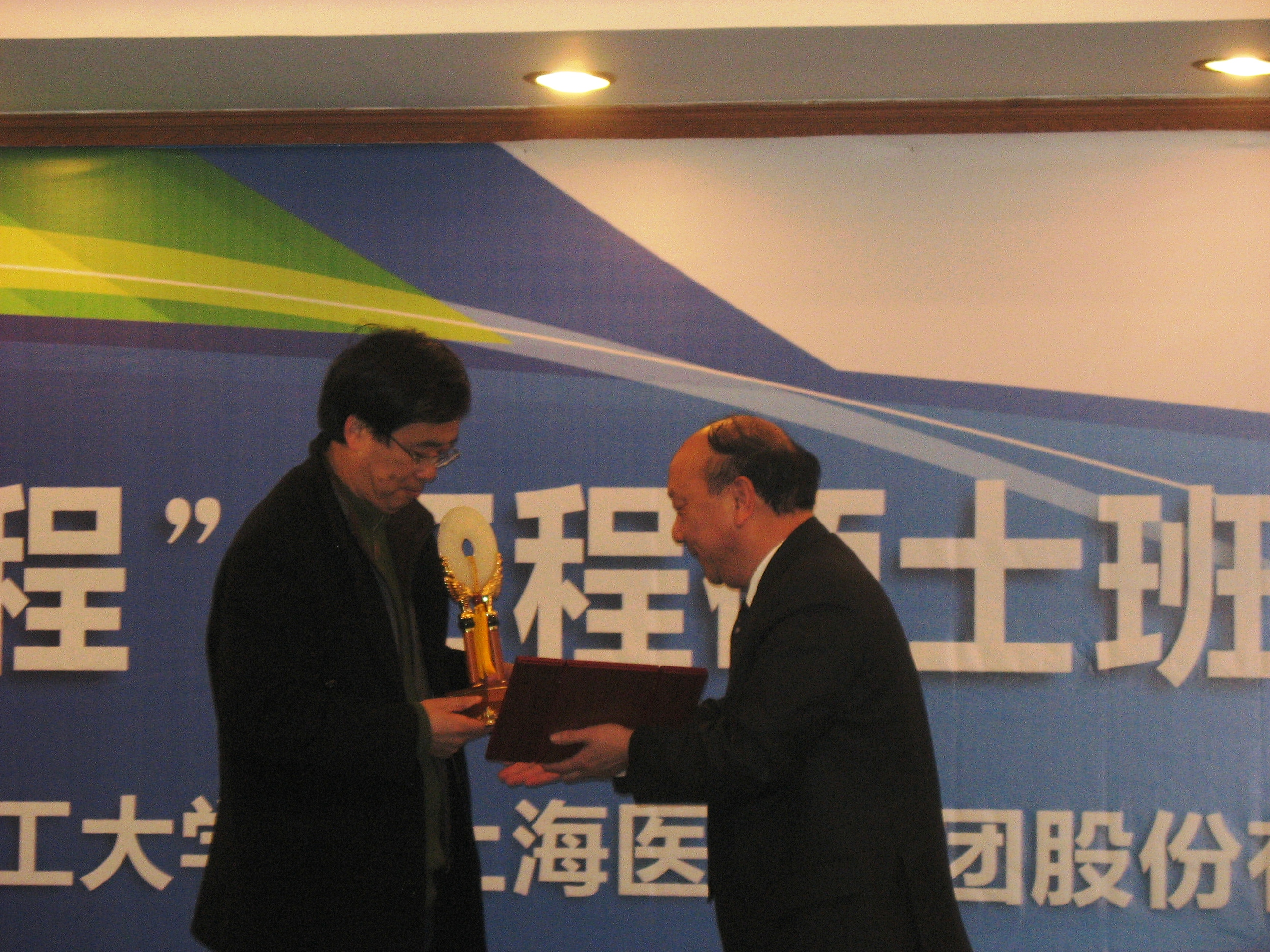 随后上海医药党委书记张家林和于建国副校长分别代表上海医药和校方互赠礼物,寓意重组后的上海医药和转型中的华东理工“珠联璧合”,携手发展,共创辉煌。