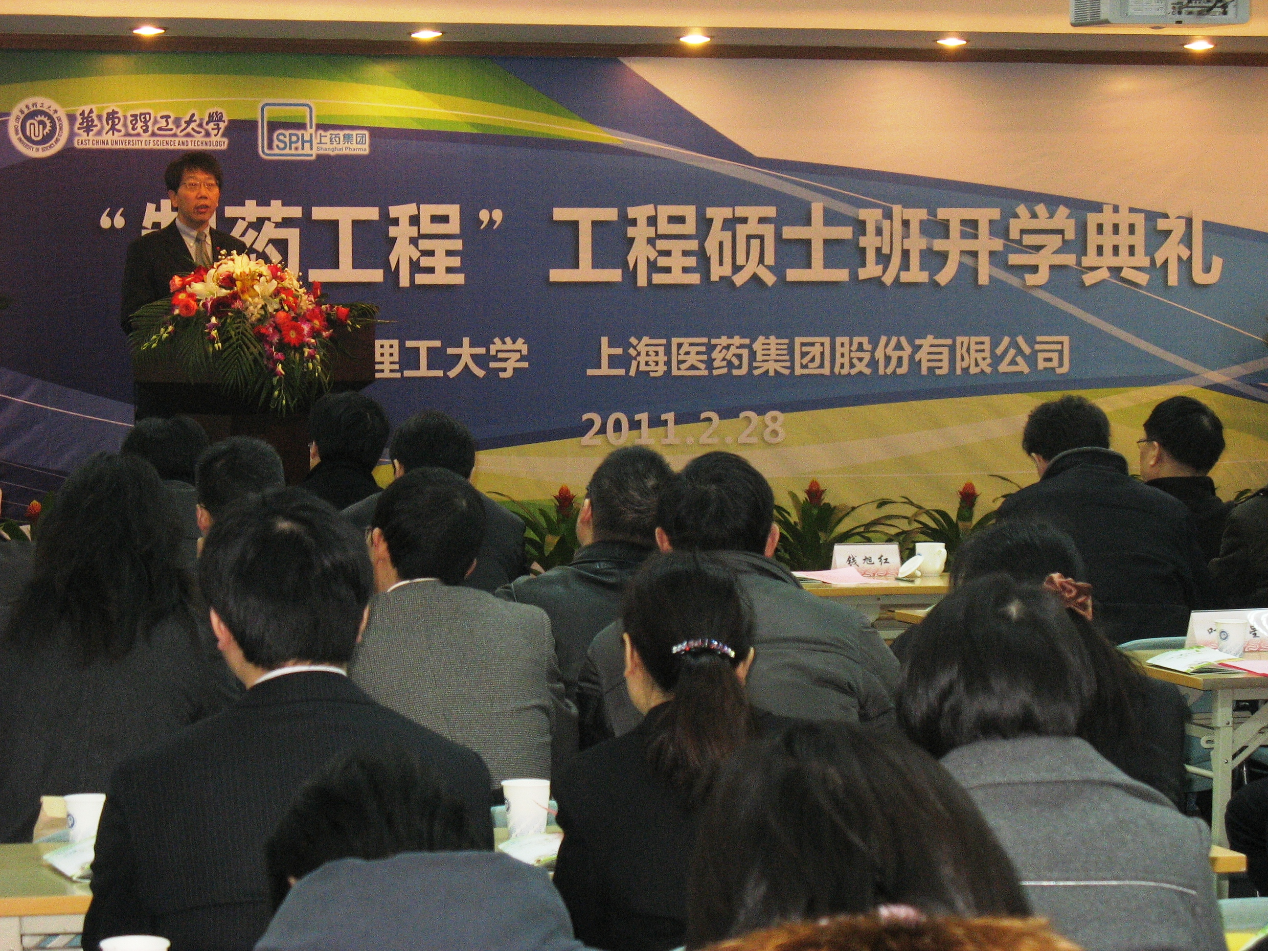 校长钱旭红、副校长于建国等领导出席了开学典礼。据了解,本期制药工程工程硕士上药班的30名学员全部来自上海医药各下属企业或研究机构的生产、研发一线。