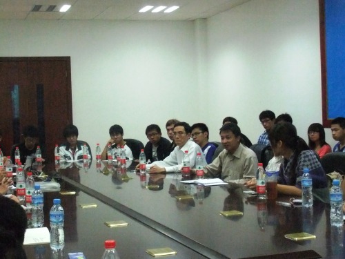 学风建设工作的两个重点:一是要降低不及格率,二是要提高成才率,让更多的学生能够继续深造。然后各班班长分享了组织、动员班级同学的工作心得,并就大学生参与社会活动与专业学习的时间分配问题进行了讨论。对此唐老师也对同学们提出了几点要求:一、希望大学生能提高自制力,对网络游戏要有免疫力;二、建议同学们要在学有余力的前提下参加社团活动,不要颠倒了主次,因参加活动而影响到学习;三、提高自学能力,不但要做到课前预习、课堂上勤记笔记、课后复习,还要对老师没有讲到的内容进行自学。